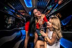 Girls partying in a limousine